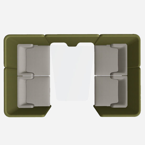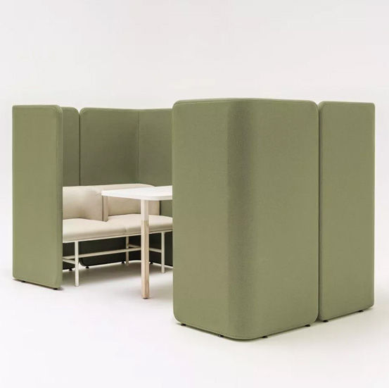 The Adriel cubicle creates a space for discussion and teamwork. Seating modules team with the optional table to create a cubicle for meetings.